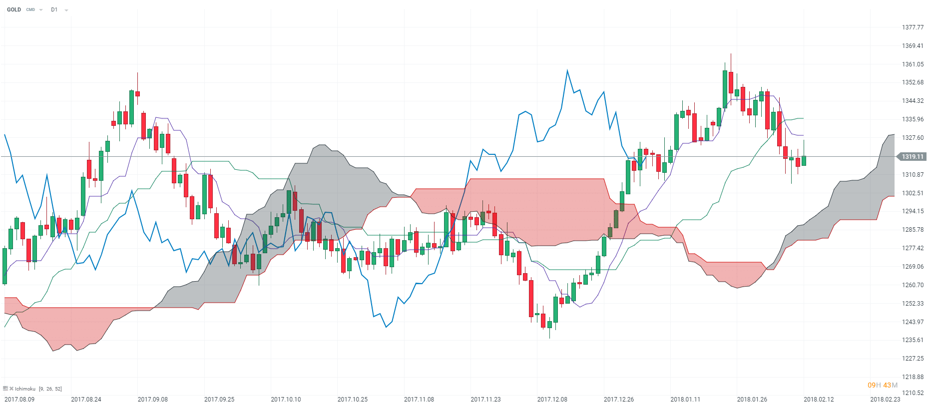 Sur le plan de l’analyse technique, l’or évolue en tendance haussière en unité de temps journalière (D1). Et pour cause, au regard du critère Ichimoku, les prix sont portés par le nuage Kumo. En revanche, nous notons que la Tenkan (courbe mauve) et la Kijun (courbe verte) capent les prix. Par ailleurs, la Lagging-Span (courbe bleue) est orientée à la baisse et commence à fluctuer sous les prix. Malgré le récent repli des cotations, nous conservons une préférence acheteuse sur le métal jaune et estimons que les cours pourraient renouer avec le niveau de 1 350 $ l’once à moyen terme.